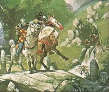 The Dúnedain of Cardolan, regardless of their persuasion, were not generally considered to be very devout. In Cardolan, the Three High Festivals were carefully observed, but there were few other outward displays of religion. Given the Dúnedain's long history of intimate contact with the immortal Elves, even those of Valinor, and their direct experience of the Manifest Will of Eru in the War of Wrath, the Gift of Númenor and its Downfall, it was not surprising that they were little concerned with overt worship. The Dúnedain of Cardolan were, however, very concerned with their ancestors, as could be noted in the black obelisks set in several places of honor in their courtyards. Otherwise they were more inclined to action and less to mysticism than their relatives in Arthedain. They held that, as the first among the second Children of Eru, they had an obligation to set an example to other Men by deed and appearance; chiefly to rally and lead all Men against the Darkness and the minions of its foul author. The Tarkils of Cardolan followed a similar, albeit lower, path. Their concern with their ancestors was often expressed in an excessive concern with their personal honor, and they were rather superstitious, especially with regard to "luck". The Tarkils were also inclined to honor Eru through the Valar. Especially among the warrior class it was common for the men to follow a loose cult that exalted Tulkas, while their women were devoted to Niesse. The Cardolandren commoners tended towards an attitude that could be described as irreligious. They recognized that there were other powers in the world, but felt that their purposes were beyond the knowledge of Men. The rural Eriadorians were very superstitious. The common folk and clansmen of Cardolan were usually familiar with the lessons of the Dúnedain, but they had found the need for more direct comforts, especially in the hard times. They sought to honor the Sky Father and the Earth Mother at the Festivals and during the planting and harvest seasons with simple but moving rites. On a day-to-day basis, they sought to keep various benevolent and malevolent spirits appeased with charms and libations. Since many Southerners arrived during the Plague years, several cults associated with "sacred mysteries" had made progress, and some lords rightly feared that some of these cults might have been fronts for the Black Religion. The Dunnish tribesmen held odd beliefs, holding that their ancient culture fell because of the death of the "old gods". Their practices were primitive, animistic, and shamanistic.