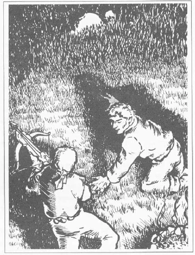 Two Hobbits using a Bracebow