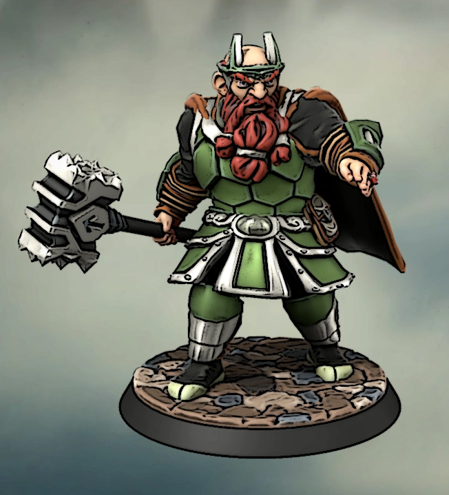 He grabbed his warhammer and battered every orc that dared close in on him for melee combat. The dwarves who stood with him was impressed and motivated, their morals heightened when they saw their King give their enemies a proper hammering, not knowing their leader as a warrior. It was a fierce dwarf King whom stood there crushing one foe after the other with a brute strength few had seen before or since. The only explanation for his immense prowess was due to his many years as a craftsman at the forges, despite turning away from the path of the warrior in his youth.