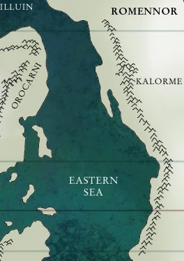 Kalormë (Av. Kalâoro; PQ. "hill-crest over which the Sun rises") was a mighty mountain standing as highest peak of the Eastern Walls, a colossal, curving mountain range that marked the easternmost edge of the known world in the land of Oronto, the Uttermost East. Its peak was second in height only to Oiolossë, the snow-crowned summit of Taniquetil in the Blessed Realm. Kalormë was known as the Eastern Pillar, the Mountain of the Rising Sun, and the Great Watchtower of the East, mirroring Oiolossë, which stood as the Western Pillar of the world.