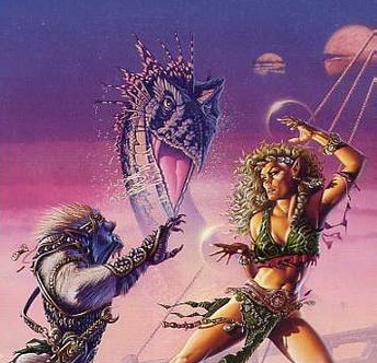 They had dark grey or blue skin and a pelt of thick, white hair growing on the head, neck, and shoulders. Females possessed an additional thicket that grew down the bony spine of their backs. Both genders had long arms and an extra bone connecting the wrist to the hand. Long, dexterous fingers capped by a claw–like nail aided them in becoming accomplished craftsmen and bowmen. They built longships in which to plied the seas, raiding and plundering other vessels as pirates. Leather armor and curved swords were their usual battle garb. Their boats served as their only home in spite of the fact that most could not swim. Sea–Krals feared the hungry waves, but derived too much pleasure from their violent way of life to abandon the ocean. Nocturnal,they slept by day. Average lifespan was 55 years.