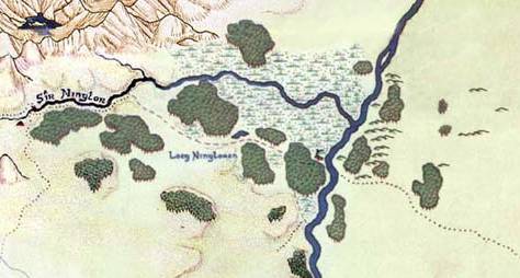 The Sîr Ninglor (S. "River Goldwater", "River Gladden"[1]) was a minor tributary of the Anduin arising on the eastern side of the Misty Mountains about one hundred miles north of Lothlórien, flowing eastward and terminating in a broad marsh (the Loeg Ningloron, (S.) "Gladden Fields"). Yellow irises grew along the river and among the marshes of the Gladden Fields, hence the names.
