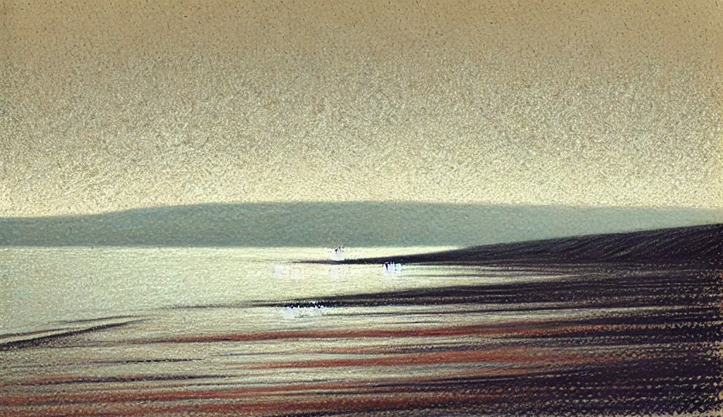 A Silent Beach (Q. Falastîni, Ad. Kuildasakal) lay upon the scorched vastness of Easternesse, where the Burnt Land of the Sun met the Soundless Sea in hushed desolation. It was a place of sorrow and stillness, overshadowed by the Walls of the Sun, where neither wave nor wind dared to break the solemn quiet.