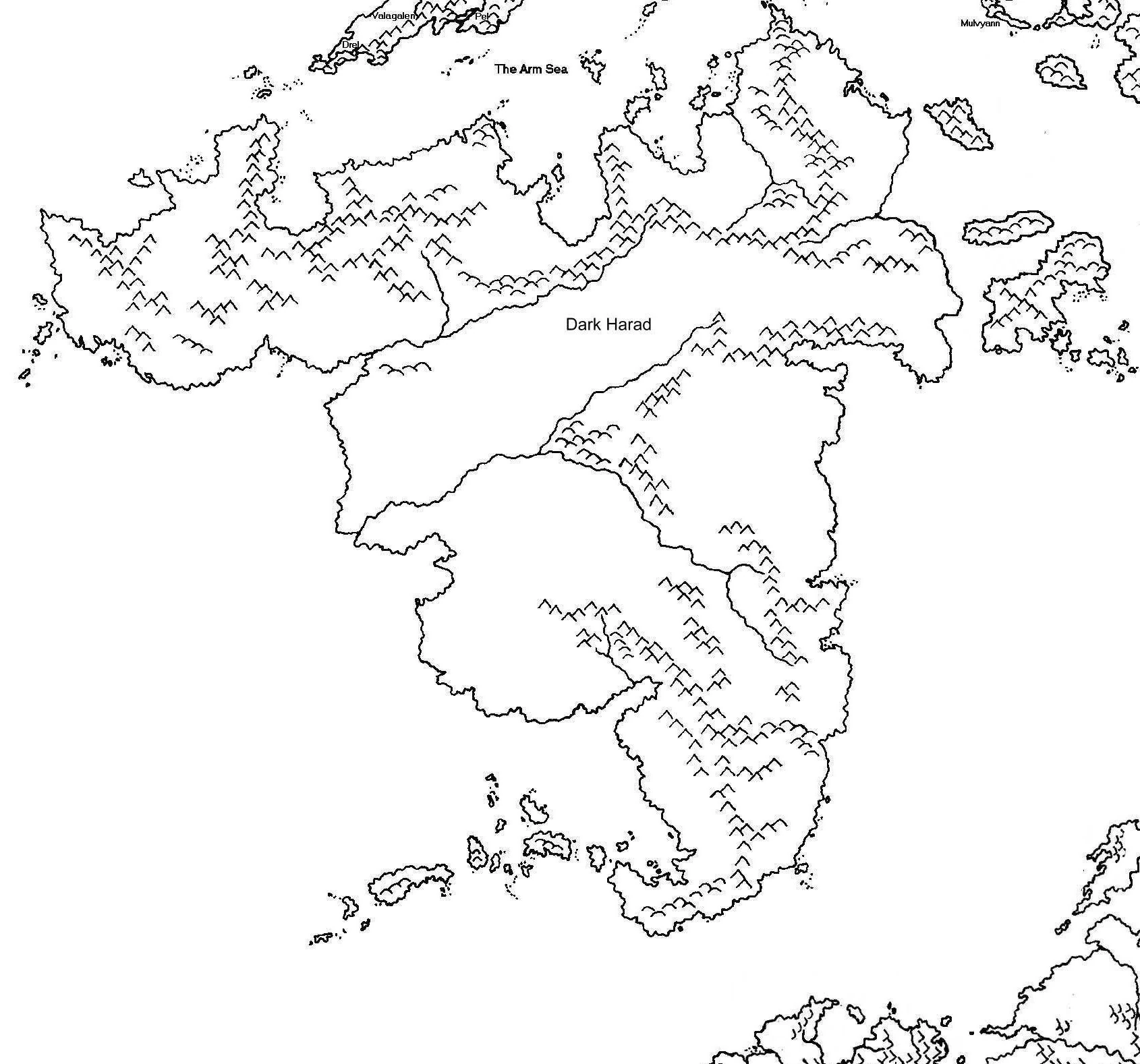 The central continent of Emêr lay within the inner seas opposite to Harad. Its lands were home to a unique number of cultures which were quite distinct from most cultures of the Haradrim or Easterlings, the Tarâni, possible descendants of Númenóreans, closely related groups as the Worim, Lydian and Laan, groups of possibly mixed easterling-haradron descend such as the Aldâri, Kinsai, Lankani, Nuyani, Ôkhu, Shayan, Thesian, Vayâri,Yâderi, Yinêri, Y’nari or generally alien cultureas as the as the Anzêti, Kuluku and Quaidu but also Dark Elves, a wayward offshot of the dwarven race, the Nômari and races related to Orcs and Trolls as the Lugroki, Murlogi, Krai and possibly the Trôgli.